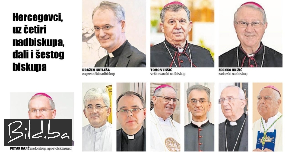 Na čelu Zagrebačke nadbiskupije je nadbiskup Dražen Kutleša, dok je nadbiskup splitsko-dalmatinski Zdenko Križić. Hercegovina ima još jednoga nadbiskupa koji je tu zaređen i ovdašnjih je korijena. To je Petar Rajič, apostolski nuncij za Litvu, Latviju i Estoniju s naslovnom povijesnom Sarsenterskom nadbiskupijom. Do izvjesnoga vremena kotorski biskup podrijetlom iz Stoca Ivan Štironja preuzeo je Porečku i Pulsku biskupiju, a Bože Radoš je pak na čelu Varaždinske biskupije. Kada se uđe u dublju analizu, čak četvorica biskupa podrijetlom su iz Tomislavgrada, koje se krsti i kao Duvno – Kutleša, Križić, Radoš te mons. Ivan Ćurić, pomoćni biskup đakovačko-osječki. U mirovini je od ove godine i Mostarac Želimir Puljić, koji je dugi niz godina bio zadarski nadbiskup i predsjednik Hrvatske biskupske konferencije.