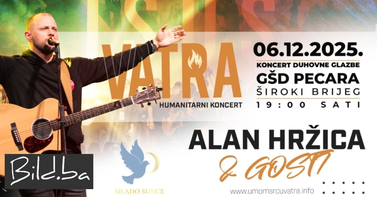 Zajednica Mlado Sunce i ove godine daruje Širokom Brijegu poseban glazbeni događaj, peti humanitarni koncert duhovne glazbe “Vatra”, koji će se održati 6. prosinca u 19 sati u sportskoj dvorani Pecara. Na blagdan svetog Nikole, Široki Brijeg ponovno postaje središte duhovne glazbe i zajedništva.